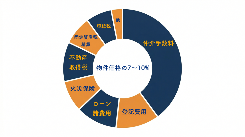 3,000万の物件なら、諸費用だけで210〜300万円かかる計算です。
